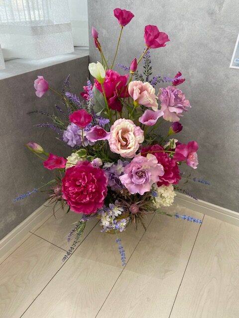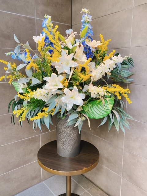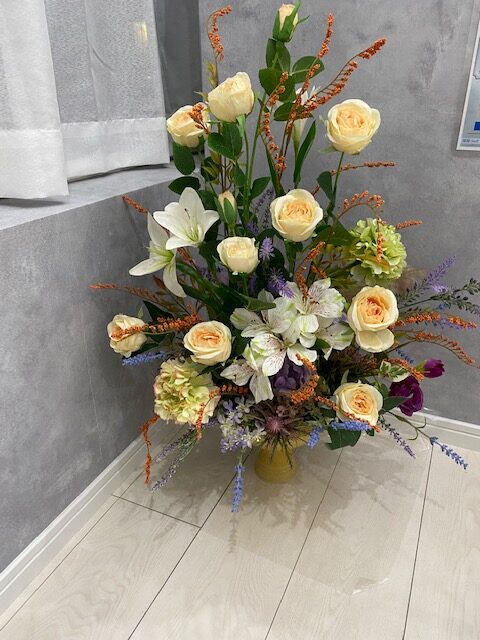 エントランス、受付けは、会社の顔なので、訪問者に安心感や清潔感を感じて貰う空間になっていて、歓迎の意味で、オモテナシスペースにお花が飾られていると、やはり気分が和むと誰もが感じるのではないでしょうか。